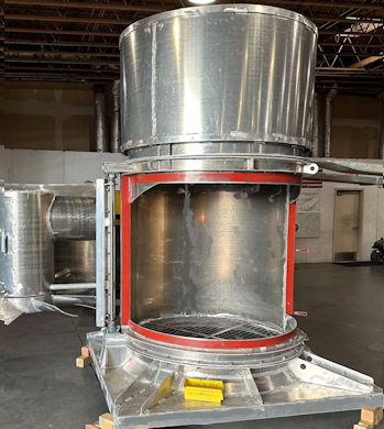 Custom High Temp Axial Exhaust Fan, AMCA Type B Spark Resistant with 40 HP Explosion Proof Motor, Windband Backdraft Damper and Special Support Hanger.